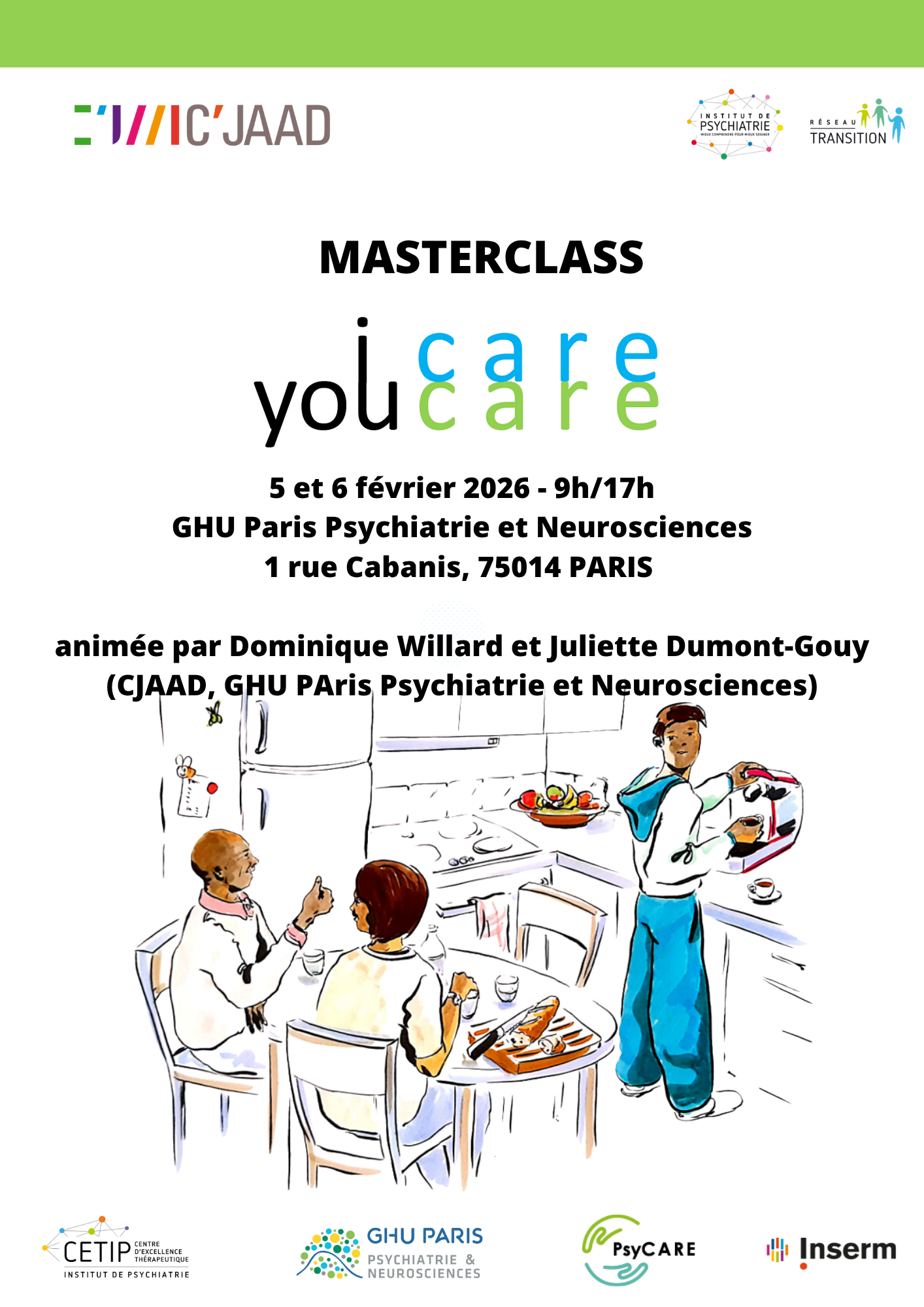 Le programme d’Éducation Thérapeutique i Care/you Care a été développé par le C’JAAD – Centre d’évaluation pour les Jeunes Adultes et Adolescents, GHU Paris Psychiatrie et Neurosciences. Labellisé Centre d’Excellence de l’Institut de Psychiatrie, le C’JAAD est Centre Régional Référent, à l’initiative du Réseau Transition.